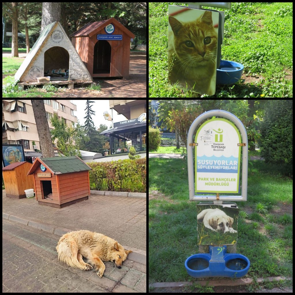 Living in Eskisehir locals and foreigners get used to sharing streets, food and love with stray cats and dogs. Whenever we go to parks we find shelters for cats and dogs with water and food, blankets for the winter and many dogs running around or sleeping on the grass waiting to play and to be pet. They are not harmful and they don’t bite, they are used to humans and they love to be cuddled.